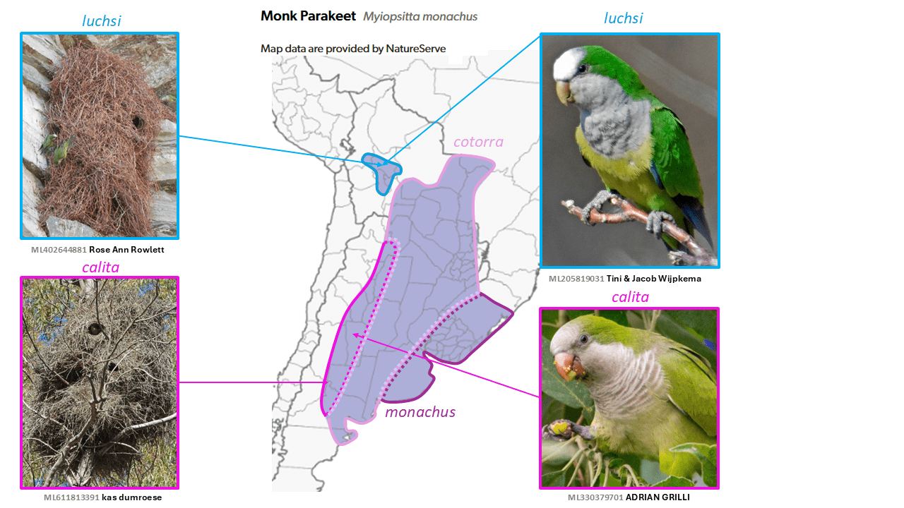 English names: The English name Mexican Squirrel-Cuckoo has been adopted for the newly split mexicana, with Common Squirrel-Cuckoo for Piaya cayana s.s. (as used by del Hoyo and Collar 2014 and Chesser et al. 2025). The usage of hyphens denotes that these are considered to form a monophyletic group.