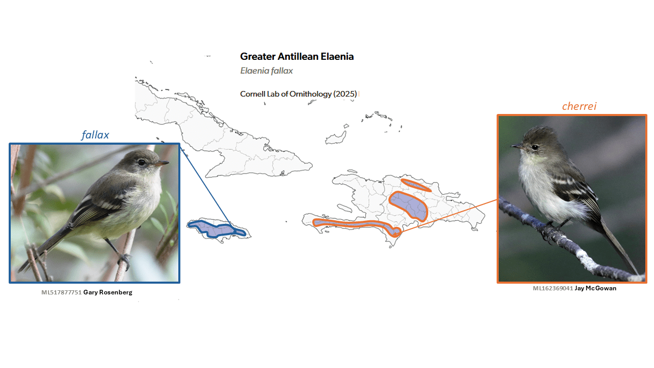 Based mainly on the marked morphological differences and past sympatry (Pratt 2025a, b), a three-way split was agreed upon by AviList Core Team (2025), NACC (Pratt 2024, 2025-A-3a, b; Chesser et al. 2025), and SACC (Remsen et al. 2025).