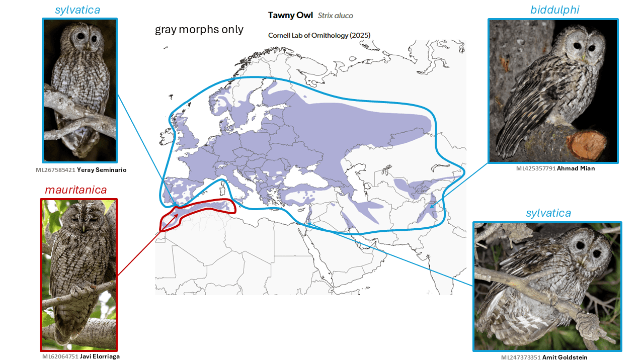 Tawny Owl Strix aluco subsumes Maghreb Owl Strix mauritanica