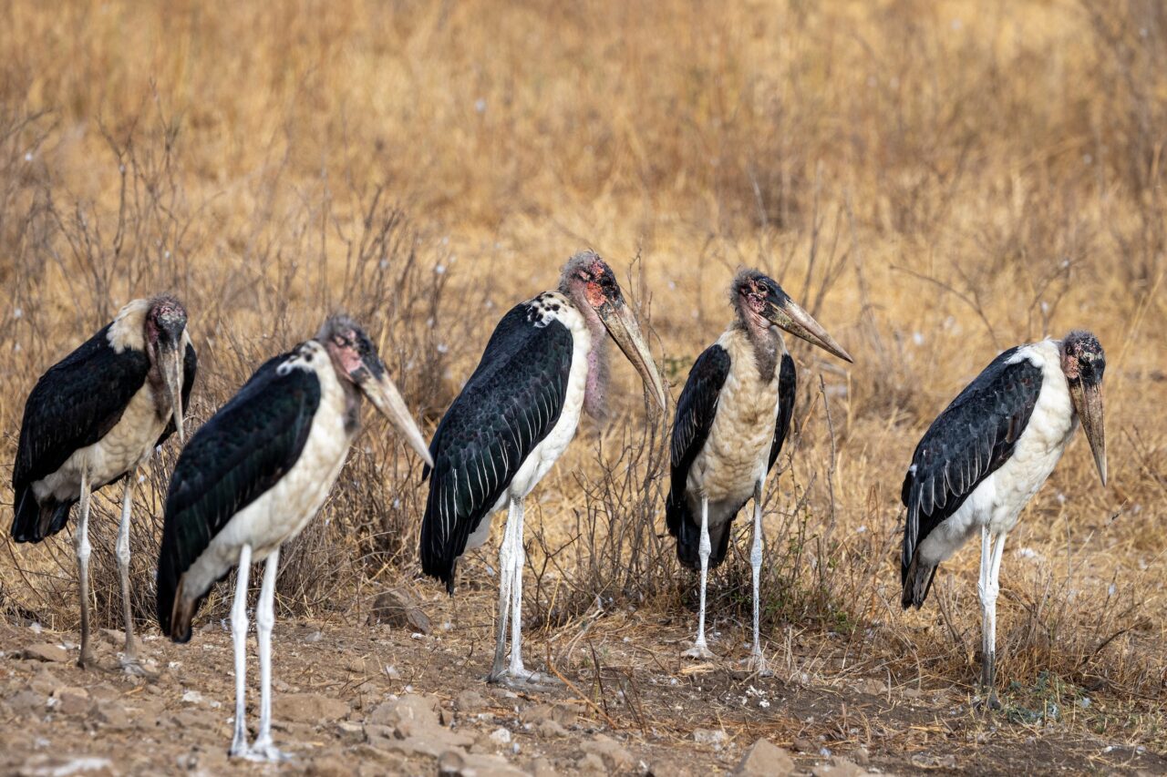 This African stork feeds on every manner of putrid animal matter available, including carrion and garbage! With a five-foot figure, the “undertaker bird” is elegant, yet unsightly. Its splotchy, balding head allows it to dive into carcasses while staying clean, and the sagging pouch on its front is actually an attractive courtship tool. When the Marabou Stork isn’t silent, it utters guttural grunts and rattles its bill (listen here).