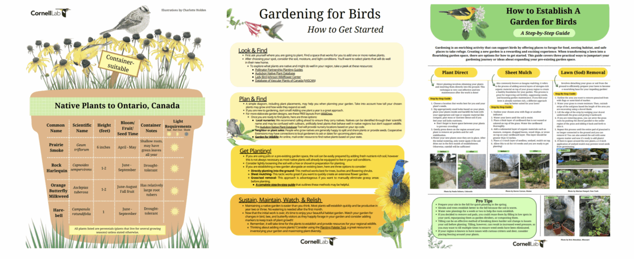 Garden for Birds also offers webinars and other opportunities for learning about creating bird-friendly habitats, along with an eBird Project where participants may share bird observations. In addition, participants are encouraged to share before and after habitat pictures to document changes in their landscapes over time, which help tell stories of transformation around the United States and Canada and help inspire others to take action.