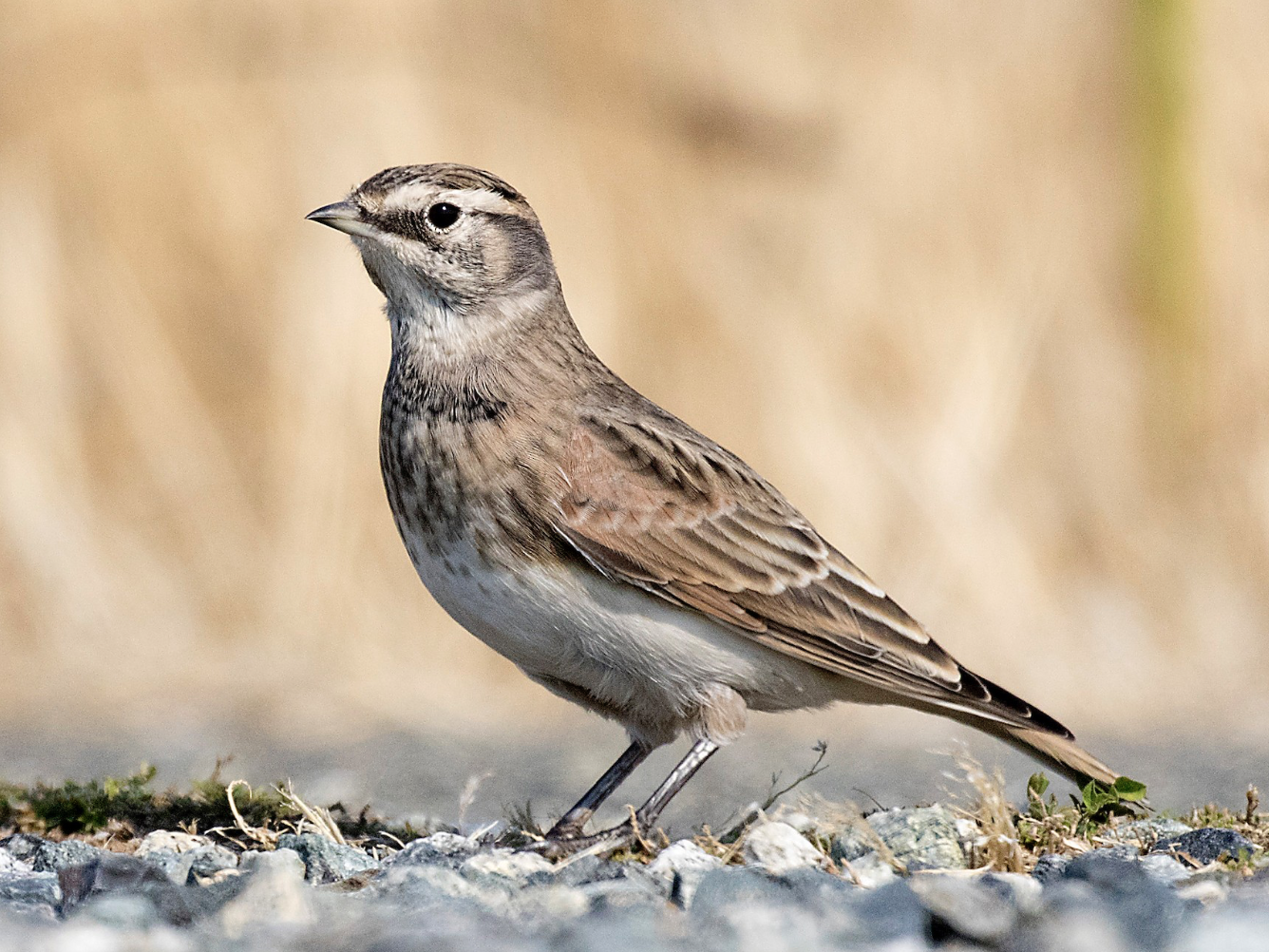 Horned Larks prefer large open areas of bare ground with little vegetation and avoid places where grass grows higher than a couple inches. Their most common habitats include prairies, tundras, beaches, deserts, dunes, and grazed or mowed fields. During migration, flocks of Horned Larks can be spotted along roadsides, feedlots, and in fields often mixing with other grassland species. In snowy areas, they can be seen foraging in the snow though they prefer barren areas.
