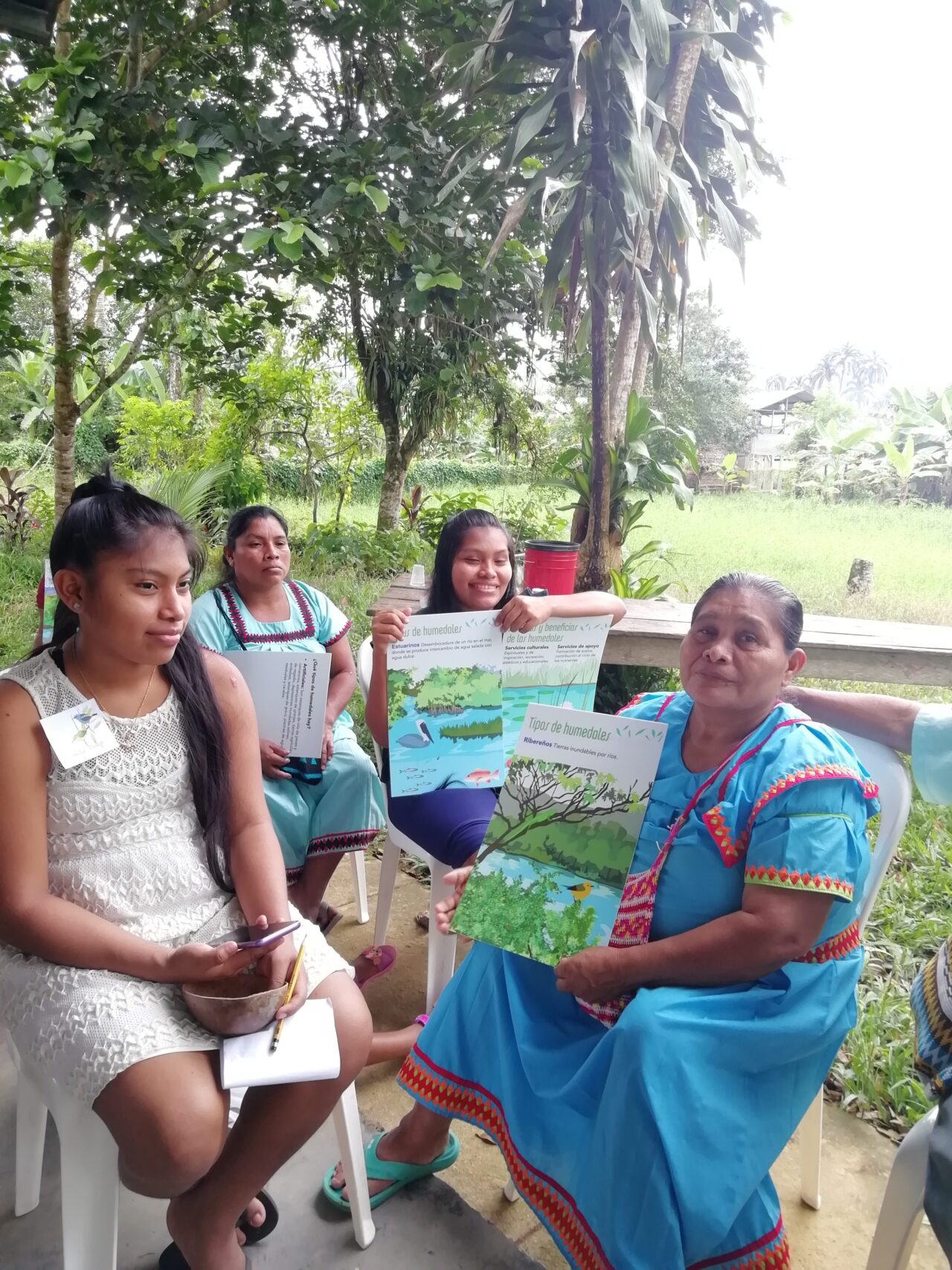 A month later, the second workshop was held. Participants discussed how to create a space in the community to protect birds and how to develop birdwatching tourism as a sustainable and beneficial activity for the community. Participants from Pueblo Nuevo used the Community Avitourism Group of the Americas manual to conduct a self-assessment, which helped the community identify their natural resources and the threats they face. Located between two rivers, Pueblo Nuevo has areas susceptible to floods during rainy seasons, but are ideal for bird watching. The importance of wetlands was also discussed. The discussion was supported by the CECoP Tools project (National Plan for Communication, Education, Awareness, and Participation of the Public) of the Panama Audubon Society and focused on water management, reforestation, and biodiversity conservation. The Pueblo Nuevo community committed to continue working on these issues to address environmental challenges that not only affect the region’s rich biodiversity but also its inhabitants, both avian and human. After the workshop, community members and their leaders were pleased with what they had learned and shared, and they committed to continuing to protect the region’s natural environment.