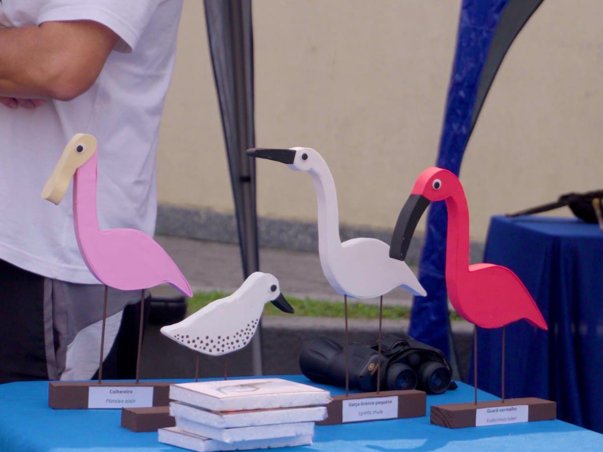 El festival tuvo lugar en la Plaza Matriz de Peruíbe, un espacio que se transformó en un verdadero punto de encuentro entre la ciencia, el arte, la educación y la comunidad. Bajo los árboles y entre risas, curiosidad y asombro, el ambiente se llenó de vida gracias a la participación de organizaciones comprometidas con la conservación, como GREMAR, Manguezal Vivo, Biopesca, el Laboratorio de Estudos do Cuaternario, el Parque Estadual Marinho Laje de Santos, el Herbario de la Universidad de Santa Cecilia, el Zoológico de São Paulo, la Estación Ecológica Jureia-Itatins, el Instituto Ambiecco, MoCAN, el Observatorio Astronómico Albert Einstein, el Museo Biológico del Instituto Butantan, Projecto Phasma, SAVE Brasil, Instituto Ambiecco, el Consejo Municipal de Bienestar Animal, la Secretaría de Medio Ambiente de Peruíbe y varios clubes de observadores de aves de la región. También se sumaron niños y jóvenes del Instituto Relfe, quienes enfrentan situaciones de vulnerabilidad social. Su entusiasmo y participación fueron un recordatorio poderoso de cómo el aprendizaje y la naturaleza puede abrir caminos de aprendizaje, inspiración y superación.