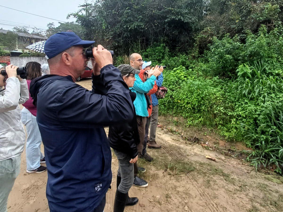 Además, el festival ofreció emocionantes salidas de campo para la observación de aves e insectos, una experiencia que conectó a los participantes con la naturaleza de forma directa. Durante estas actividades, se destacó la importancia de la ciencia participativa y el uso de herramientas como eBird, que permiten a cualquier persona participar en la ciencia y ayudar a la conservación. El recorrido se realizó entre las dunas de restinga y la floresta, dos hábitats fundamentales para la conservación y el bienestar de numerosas especies de aves. Y cuando el sol se ocultó, la diversión continuó. Las actividades nocturnas invitaron a la comunidad a mirar al cielo y explorar el universo, reflexionando sobre los efectos negativos de la contaminación lumínica, tanto para nuestra salud como para las aves. También se realizó una salida especial para observar insectos nocturnos, guiada por los especialistas de Projeto Phasma. Con la ayuda de la aplicación iNaturalist y trampas de luz, los participantes descubrieron un mundo fascinante que suele pasar desapercibido.